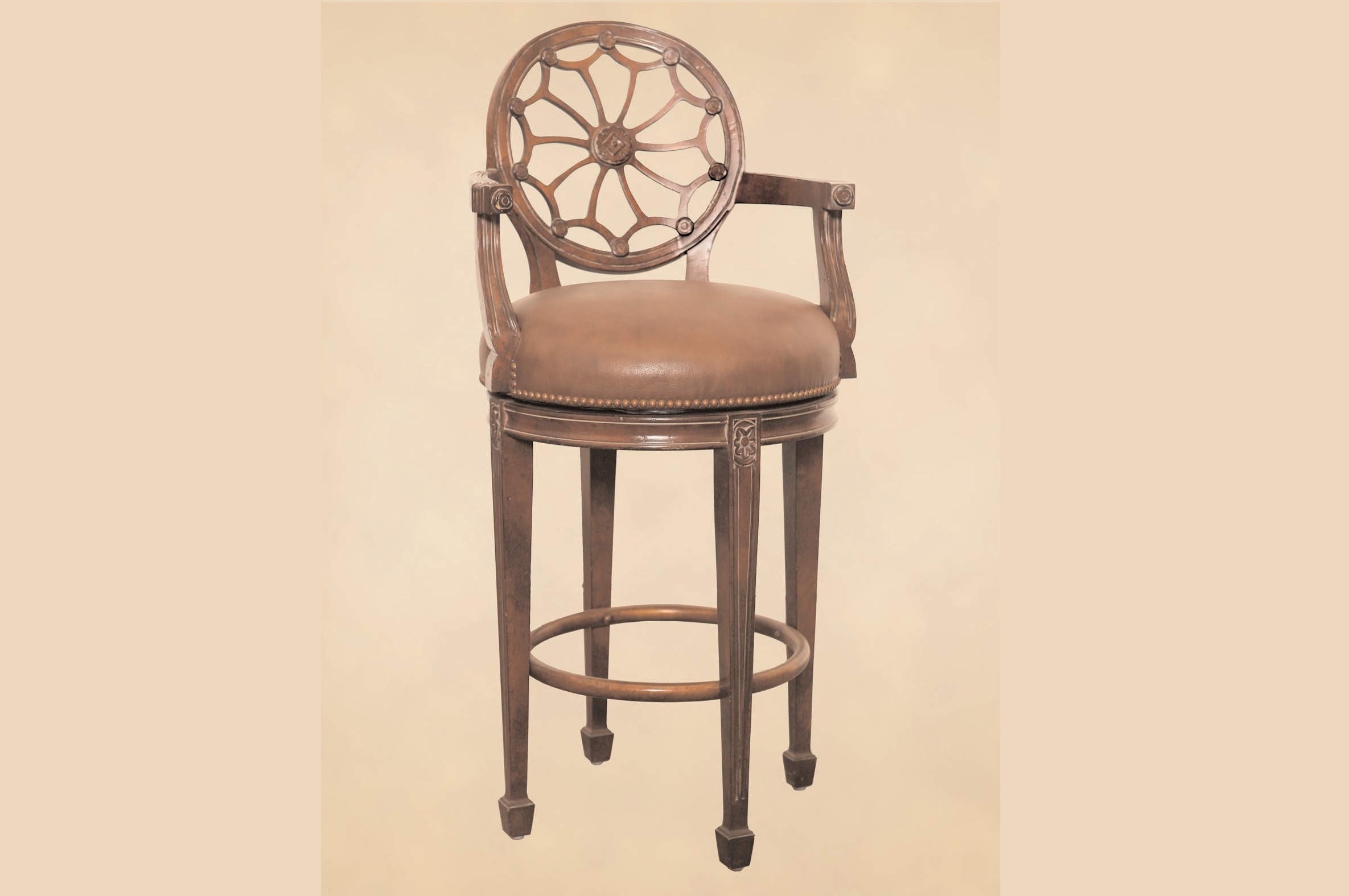 Bistro Bar Stool A-BI01 With Swivel. Leather seat. Jordi Estape Fabrics or customer's own material. Dimensions: 22"w x 21"d x 46"h Seat 31"h
