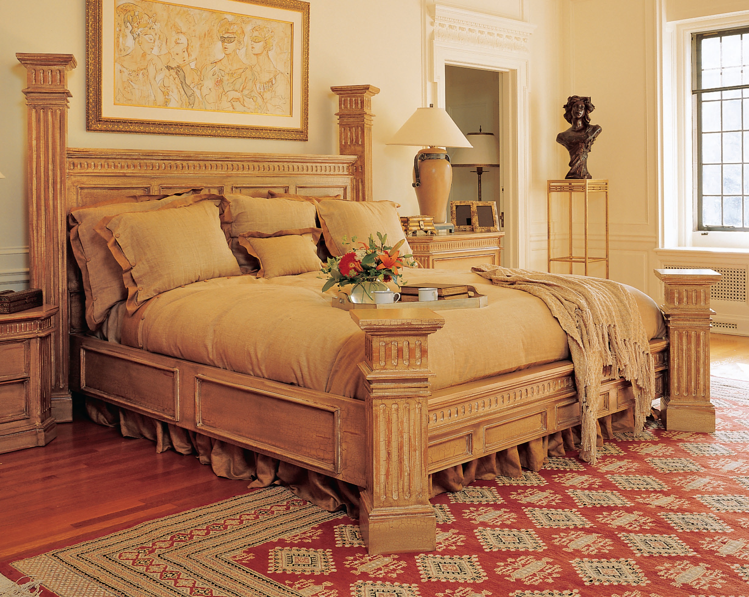 All hand-carved in solid wood and hand-finished. Available with Wood