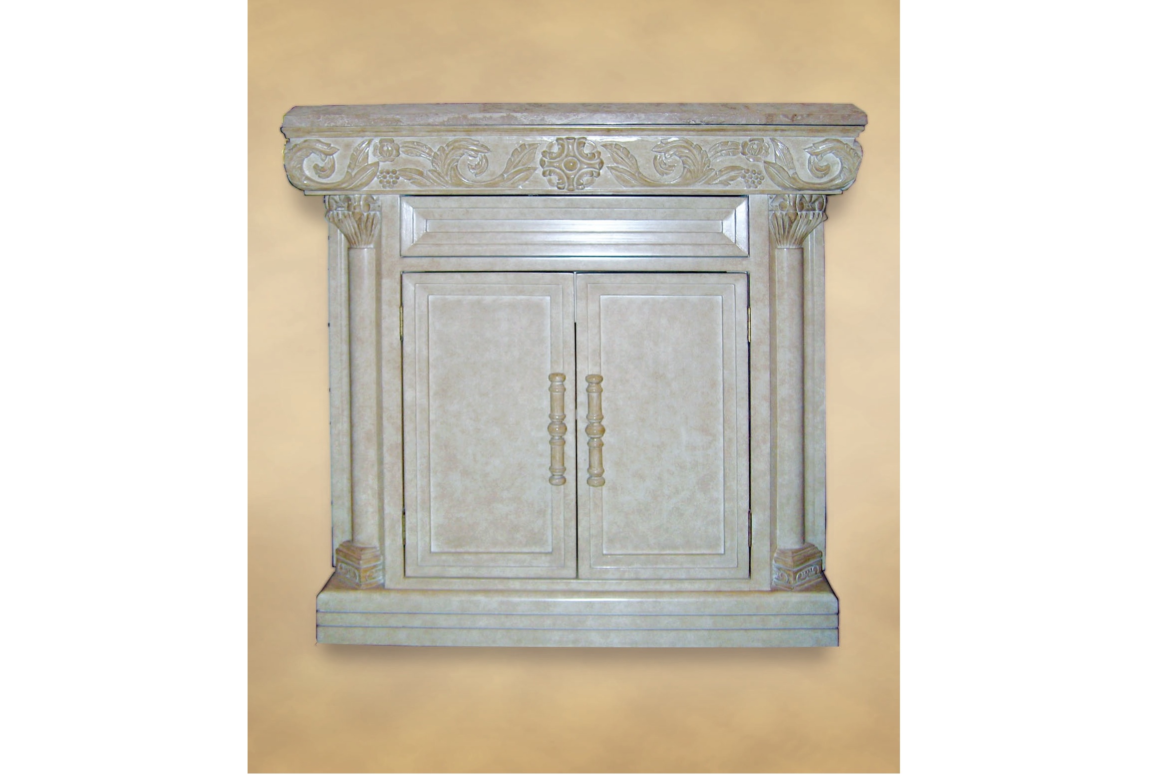 shelf inside. Available with Wood or Stone top.